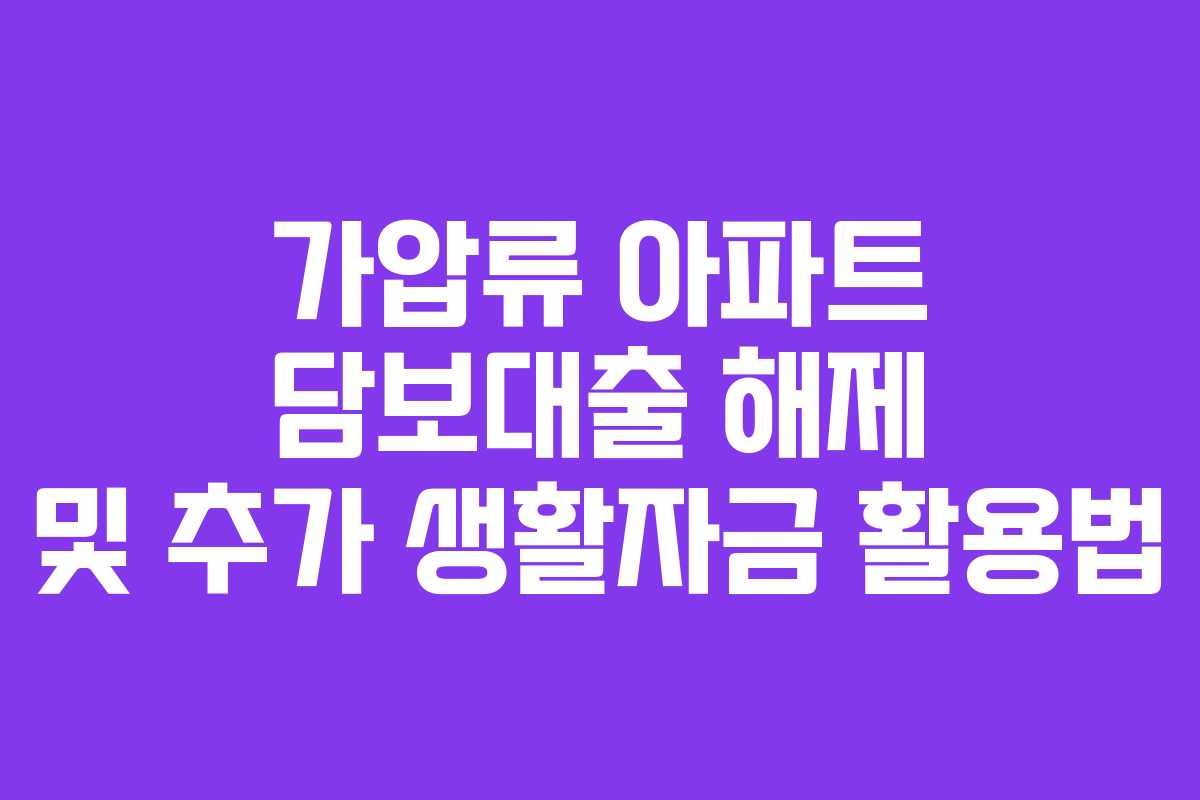 가압류 아파트 담보대출 해제 및 추가 생활자금 활용법