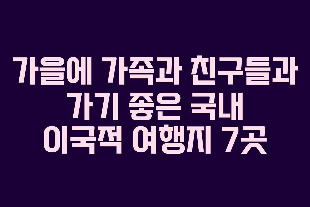 답변: 가을에 추천하는 이국적인 국내 여행지는 단양, 보성, 옥천, 제주, 장흥, 거제, 논산 등입니다.