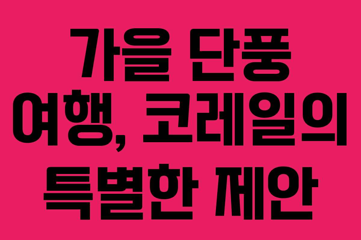 코레일은 무박 2일, 1박 2일 등 여러 여행코스를 마련하여 단풍 관람과 함께 주변 관광지도 즐길 수 있는 기회를 제공합니다. 특히, 단풍을 감상하며 한국의 자연을 만끽할 수 있는 프로그램이 매력적입니다.