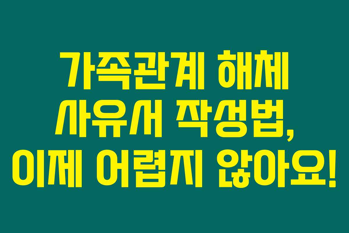 가족관계 해체 사유서를 제출해야 한다면 많은 분들이 막막할 거예요. 사실 이 서류는 개인의 사연을 담아야 되기 때문에 어떻게 시작할지 막막하죠. 혹시 가족관계 해체로 인해 힘든 시간을 보내고 계신다면, 이 글을 꼭 읽어보세요. 아래를 읽어보시면 적절한 작성법과 필요한 양식도 함께 확인하실 수 있습니다.
