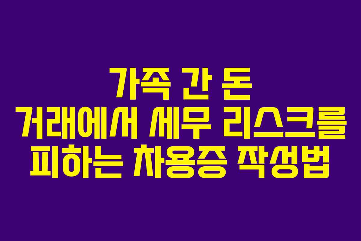 가족 간의 금전 거래는 일상에서 흔하게 이루어지는 일입니다. 하지만 이 과정에서 증여세와 세무조사 등의 세금 문제에 직면할 수 있습니다. 이 글에서는 가족 간 돈 거래에서 발생할 수 있는 세무 리스크를 효과적으로 피할 수 있는 차용증 작성 방법에 대해 설명하겠습니다. 간단한 문서 하나가 여러분의 소중한 자산을 보호할 수 있는 방법이 될 것입니다.