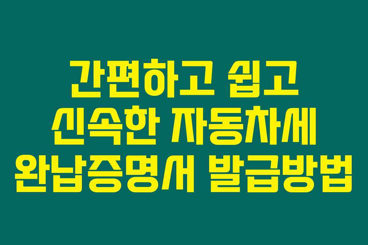 제가 직접 경험해본 결과로는, 자동차세 완납증명서는 자동차 소유자에게 꼭 필요한 중요한 문서입니다. 누군가는 대출을 받기 위해, 또 누군가는 중고차 거래를 위해 필요한데요. 하지만 발급 방법이 복잡하게 느껴질 수도 있죠. 아래를 읽어보시면 자동차세 완납증명서를 발급받는 편리한 방법을 알 수 있습니다.