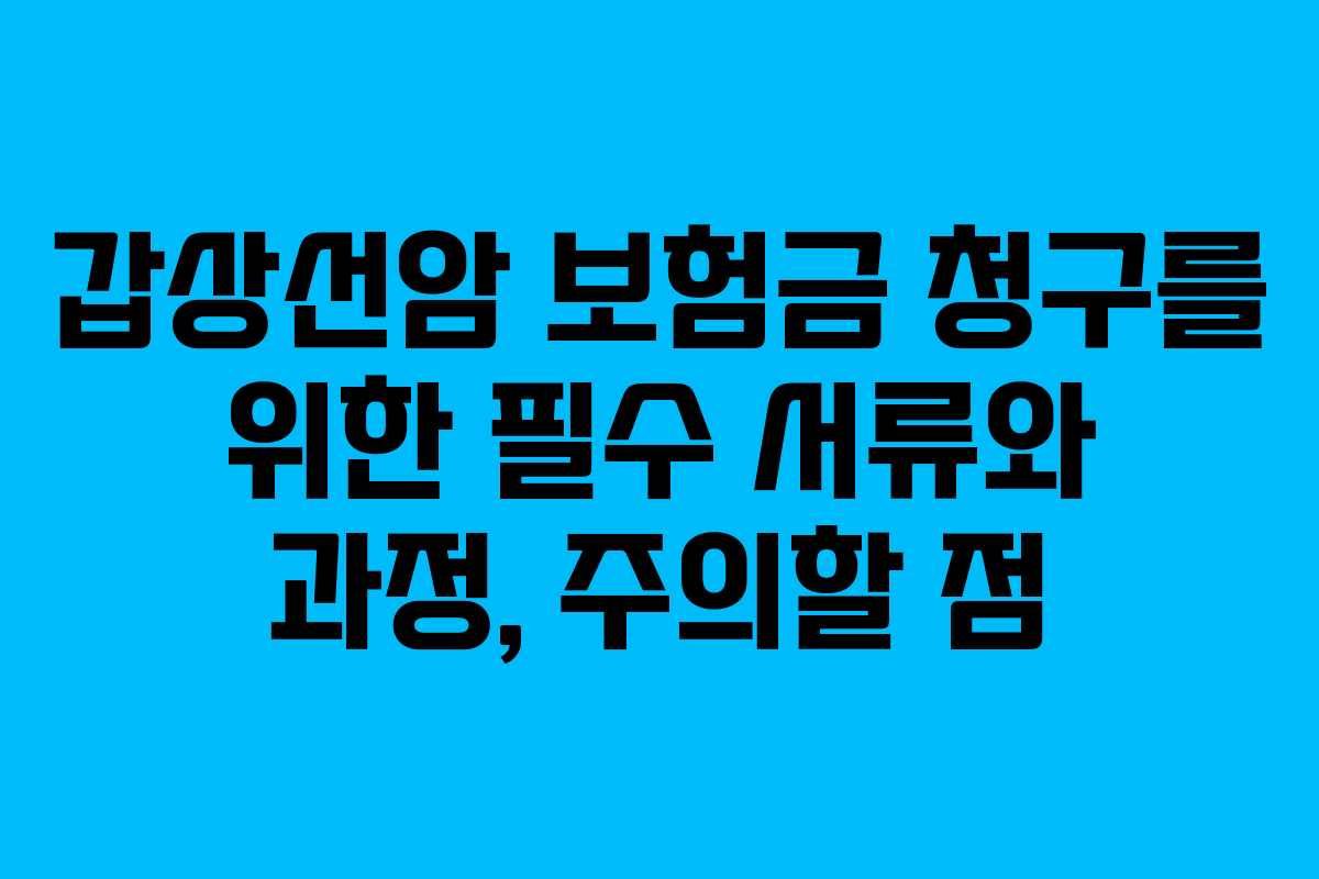 갑상선암 보험금을 청구하기 위해서는 다음과 같은 서류가 필요합니다. 이 서류들은 보험금 청구가 원활하게 이루어지도록 도와줍니다.