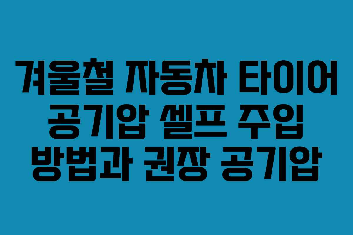 겨울철에는 자동차 타이어의 공기압을 적절히 유지하는 것이 중요합니다. 특히, 기온이 낮아지면 타이어의 공기압이 감소할 수 있어 정기적인 점검과 보충이 필요합니다. 이번 글에서는 셀프 주입 방법과 권장 공기압에 대한 정보를 제공합니다.