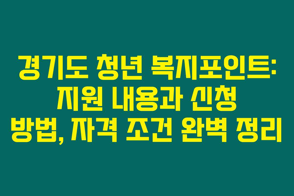 경기도 청년 복지포인트는 청년들의 삶을 변화시킬 수 있는 중요한 지원 제도입니다. 지원 조건과 신청 방법을 잘 확인하고, 혜택을 놓치지 않기를 바랍니다!