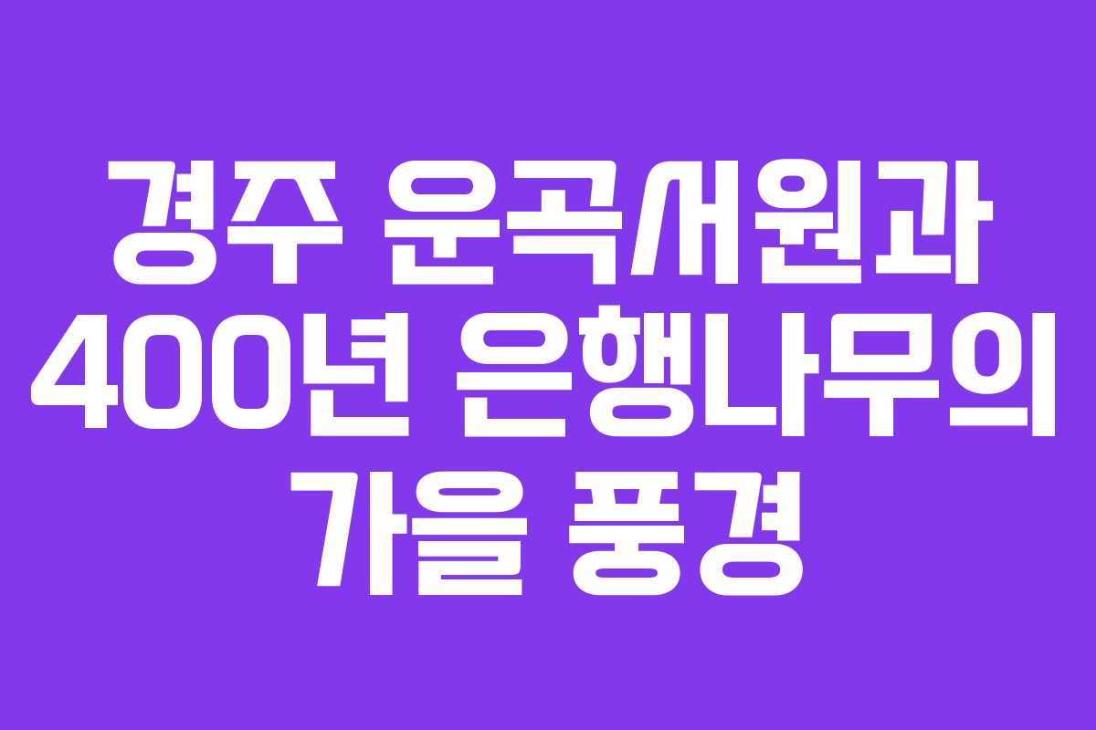 경주에서의 가을은 은행나무가 노랗게 물들어가는 아름다운 풍경으로 많은 이들의 발길을 끌고 있습니다. 그 중에서도 운곡서원은 은행나무의 명소로 손꼽히며, 역사와 자연이 어우러진 특별한 장소입니다.