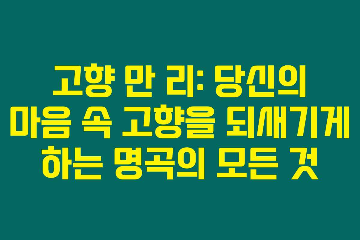 고향 만 리를 사랑하는 사람이라면 이 글을 꼭 읽어보세요. 당신의 고향을 다시 떠올리게 할 만큼 아름다운 이 노래의 모든 정보를 안내드립니다.