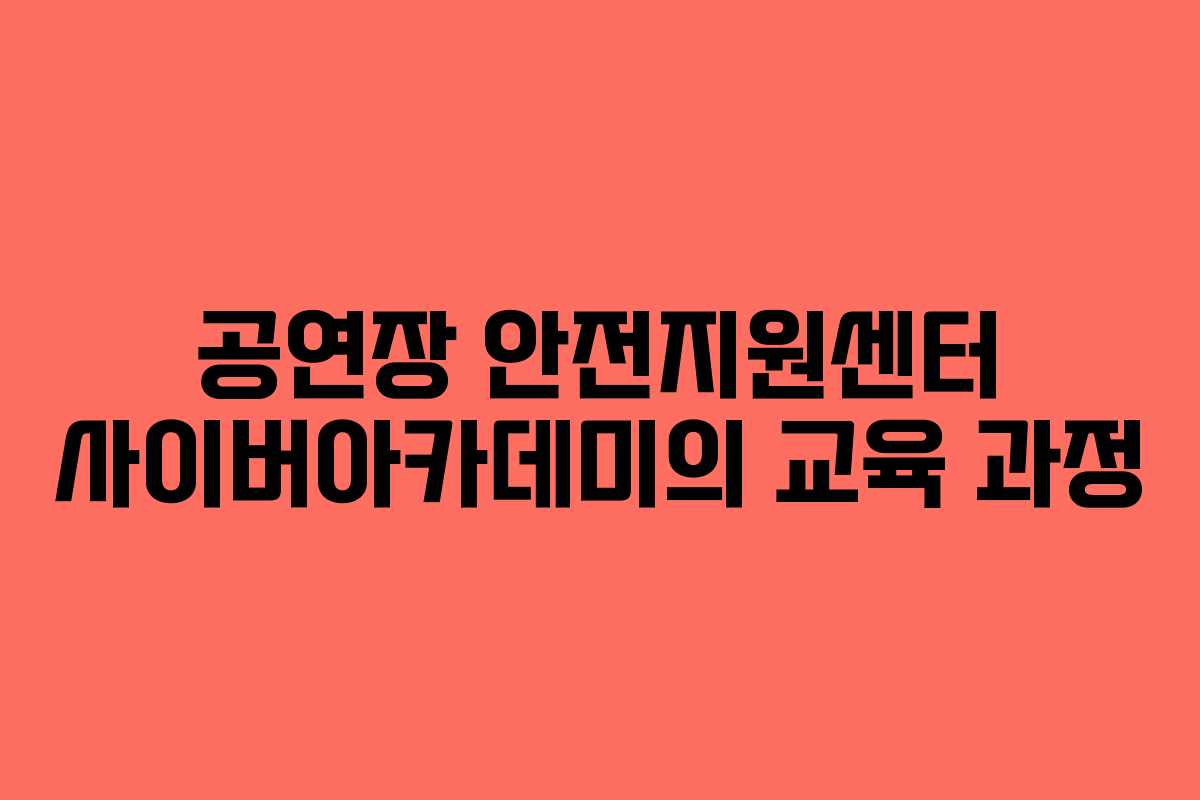 공연장 안전지원센터 사이버아카데미는 다양한 교육 과정을 통해 공연안전에 대한 인식을 높이고 있습니다. 공연안전에 관심이 있는 분들은 아카데미를 통해 전문적인 교육을 받아보시기 바랍니다.
