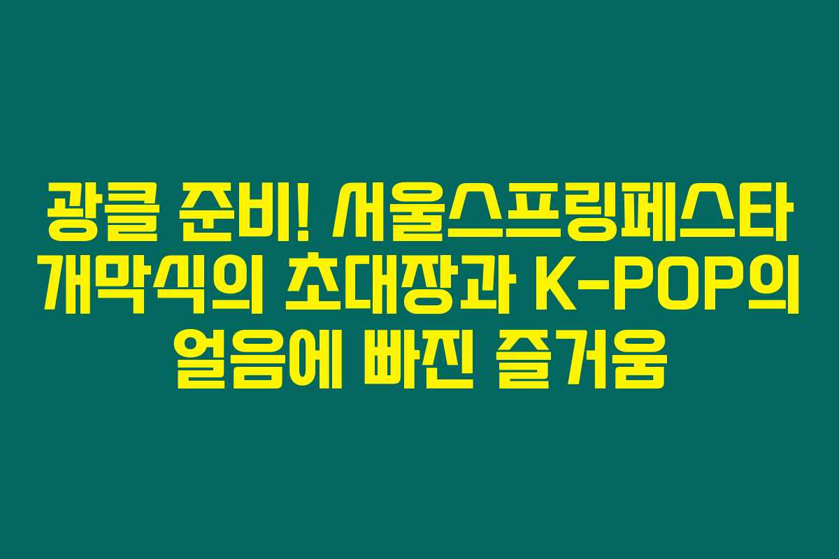 서울스프링페스타는 봄의 시작을 알리는 멋진 축제가 될 거예요. 이 즐거운 시간을 함께 나누고 싶다면, 예매를 서두르세요! K-POP과 함께하는 환상적인 경험을 놓치지 마세요.
