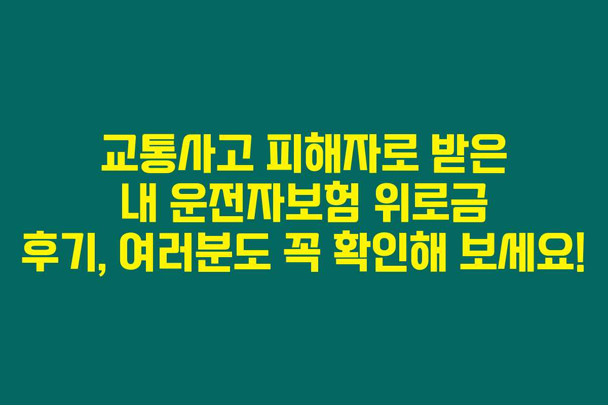 얼마 전 저희 가족이 교통사고를 당했어요. 택시를 타고 가다가 신호 위반으로 사고가 나면서 병원 치료를 받게 되었는데요. 이 과정에서 운전자보험에서 위로금을 받을 수 있다는 것을 알게 되었습니다. 아래를 읽어보시면, 저와 같은 상황에 처한 분들에게 유용한 정보를 얻을 수 있을 거예요.
