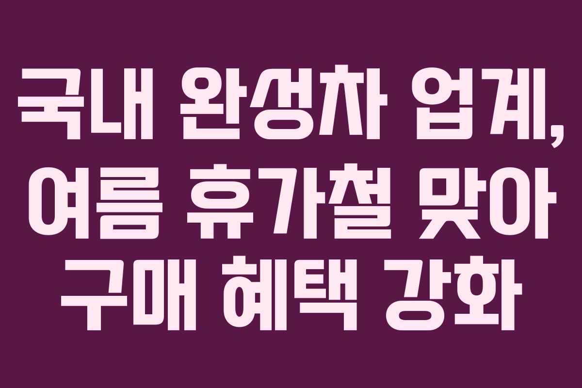 여름 휴가철을 맞아 국내 완성차 업계가 다양한 구매 혜택을 제공하고 있습니다. 각 제조사별로 특색 있는 프로모션을 통해 소비자들의 구매를 유도하고 있습니다.