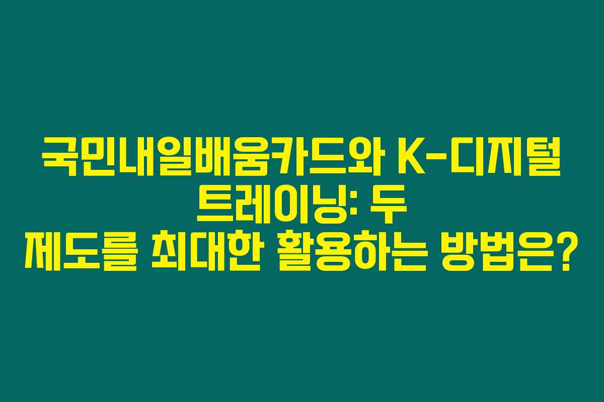 국민내일배움카드와 K-디지털 트레이닝을 적절히 활용하면 디지털 시대의 경쟁력 있는 인재로 발전할 수 있습니다. 각자의 상황에 맞는 조합으로 혜택을 극대화하고, 디지털 역량을 향상시키세요. 여러분의 성공적인 디지털 역량 개발을 기원합니다!