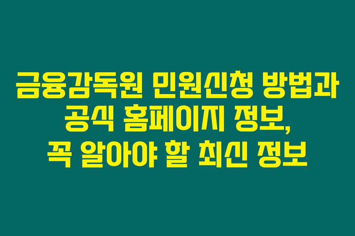 금융감독원에 민원을 신청하려고 생각 중이라면 이 글을 꼭 읽어보셔야 해요. 금융감독원은 여러분의 금융 관련 문제를 해결하기 위해 마련된 곳인데요. 민원 신청 방법부터 공식 홈페이지 정보까지 한번에 알아보겠습니다.