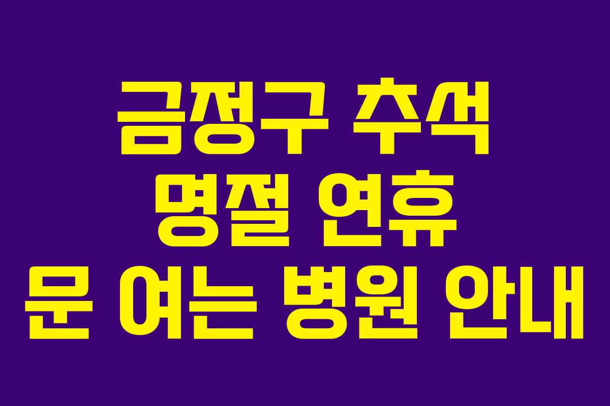 금정구의 여러 병원이 추석 연휴에도 운영되고 있으며, 피부과, 내과, 치과 등 다양한 과목에서 진료를 받을 수 있습니다.