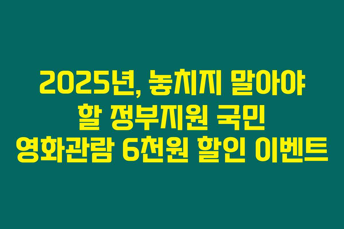 2025년 7월 25일부터 시작되는 이번 이벤트는, 정부가 국민의 문화 향유를 장려하기 위해 마련한 특별한 혜택입니다. 이 할인은 우리 모두에게 시원한 여름 날씨에 어울리는 멋진 영화 바캉스를 즐길 기회를 제공하니 기대가 크답니다!