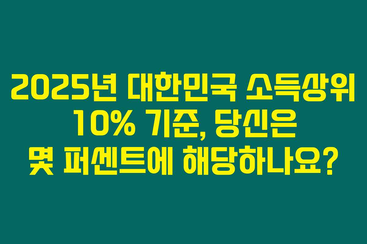 2025년의 경우, 연봉 기준으로 약 9,270만 원에서 1억 2,000만 원이 절대적인 기준입니다. 본인이 해당 소득이 상위 10%에 들어간다고 생각하신다면 공식 통계나 소득 순위 계산기를 활용해 확인해보세요.