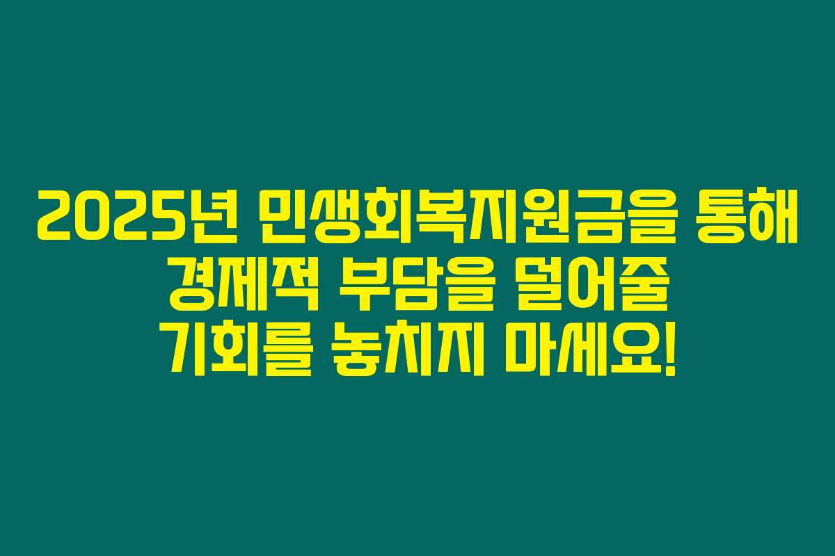 2025년 민생회복지원금을 통해 경제적 부담을 덜어줄 기회를 놓치지 마세요!