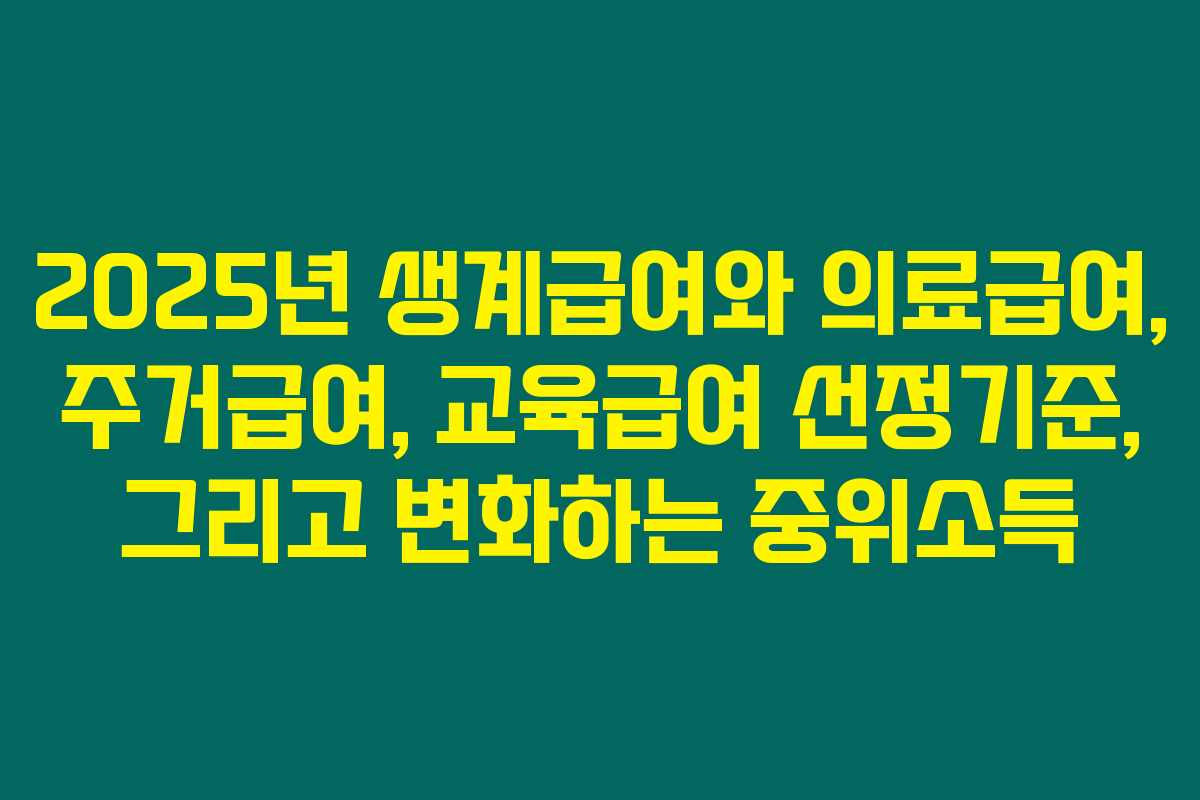 제가 직접 확인해본 결과로는, 2025년부터 달라지는 생계급여, 의료급여, 주거급여, 교육급여의 선정기준에 대해 자세히 알아보았습니다. 특히 기준 중위소득이 역대 최대 6.42% 인상되어 더 많은 분들이 혜택을 받을 수 있게 되었다는 점이 인상적이었습니다. 각 급여의 기준과 함께 중위소득표를 자세히 정리해 드릴게요.