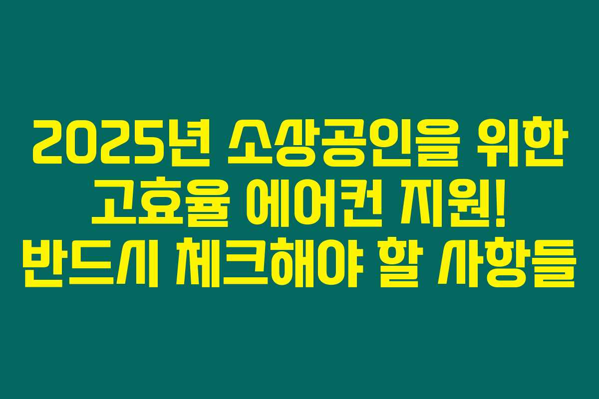 궁금증이 해결되셨나요? 2025년의 소상공인 고효율 에어컨 지원 사업을 잘 활용하여 최대 혜택을 누리시길 바랍니다. 지금이 최적의 기회니까 지체하지 말고 정확한 조건을 확인하고 지원 신청해 보세요!
