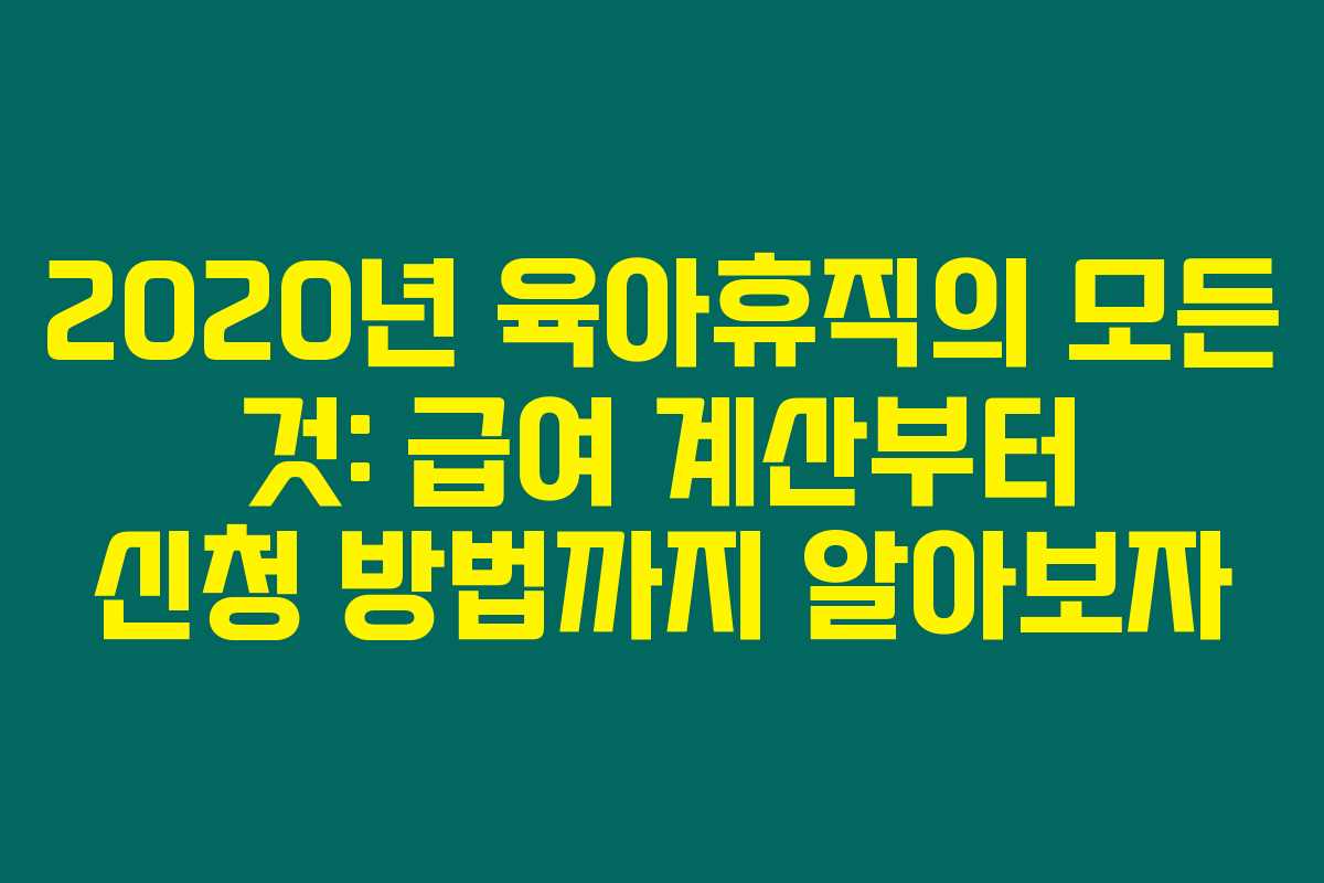 2020년 육아휴직의 모든 것: 급여 계산부터 신청 방법까지 알아보자
