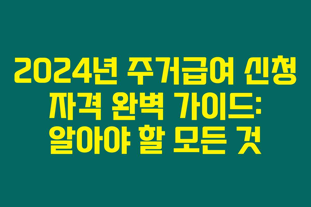 2024년 주거급여 신청 자격 완벽 가이드: 알아야 할 모든 것