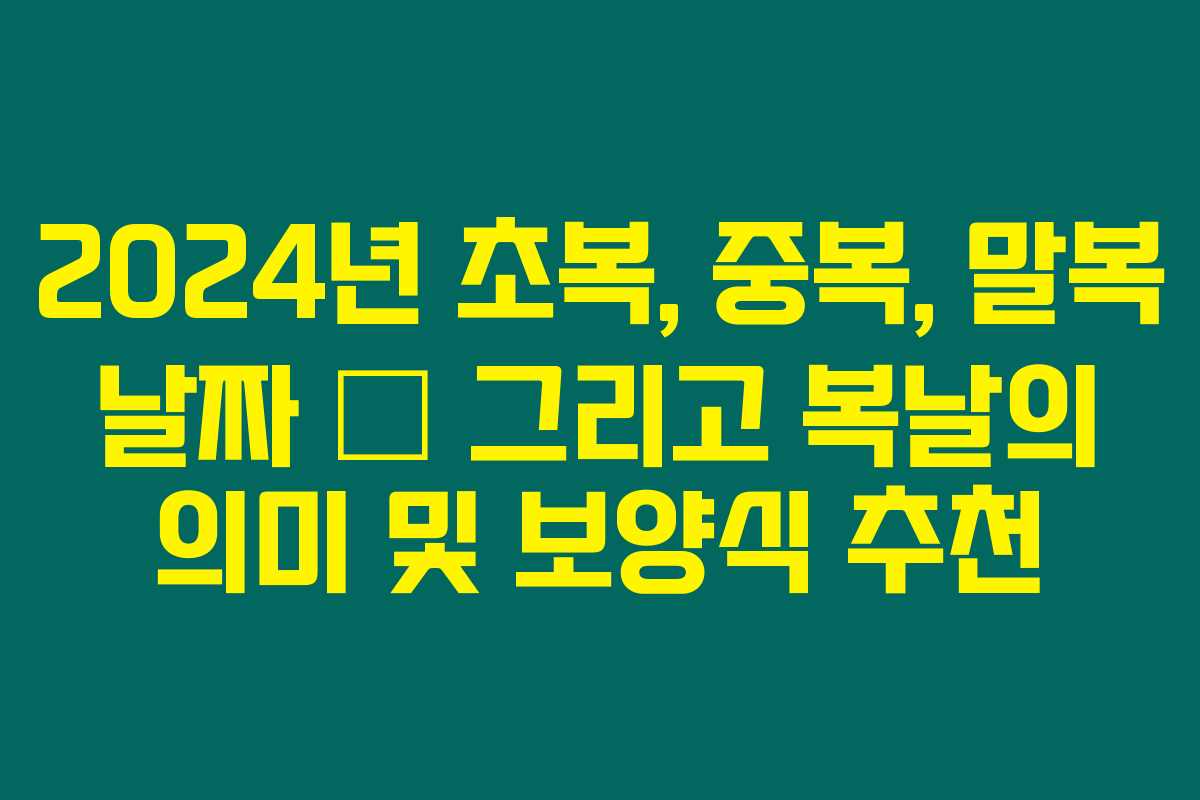 여름의 뜨거운 날씨가 계속 이어지면서, 복날이 다가오는 것이 궁금해지죠. 제가 직접 알아본 바로는, 2024년의 초복, 중복, 말복 날짜를 알고 그 의미와 보양식까지 알고 있다면 더위에 대응하는 데 큰 도움이 될 것입니다. 아래를 읽어보시면 여름을 건강하게 나는 법을 알 수 있을 거예요.