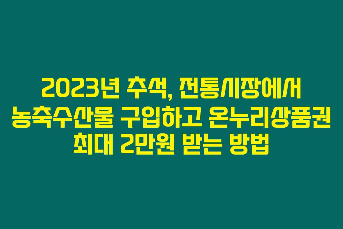 추석이 다가오면서 전통시장에서 농축수산물을 구입하고 온누리상품권으로 혜택을 받을 수 있는 기회가 왔어요. 이번 행사 기간 동안 2만원까지 환급받는 방법에 대해 아래를 읽어보시면 더욱 자세히 알게 될 거예요.