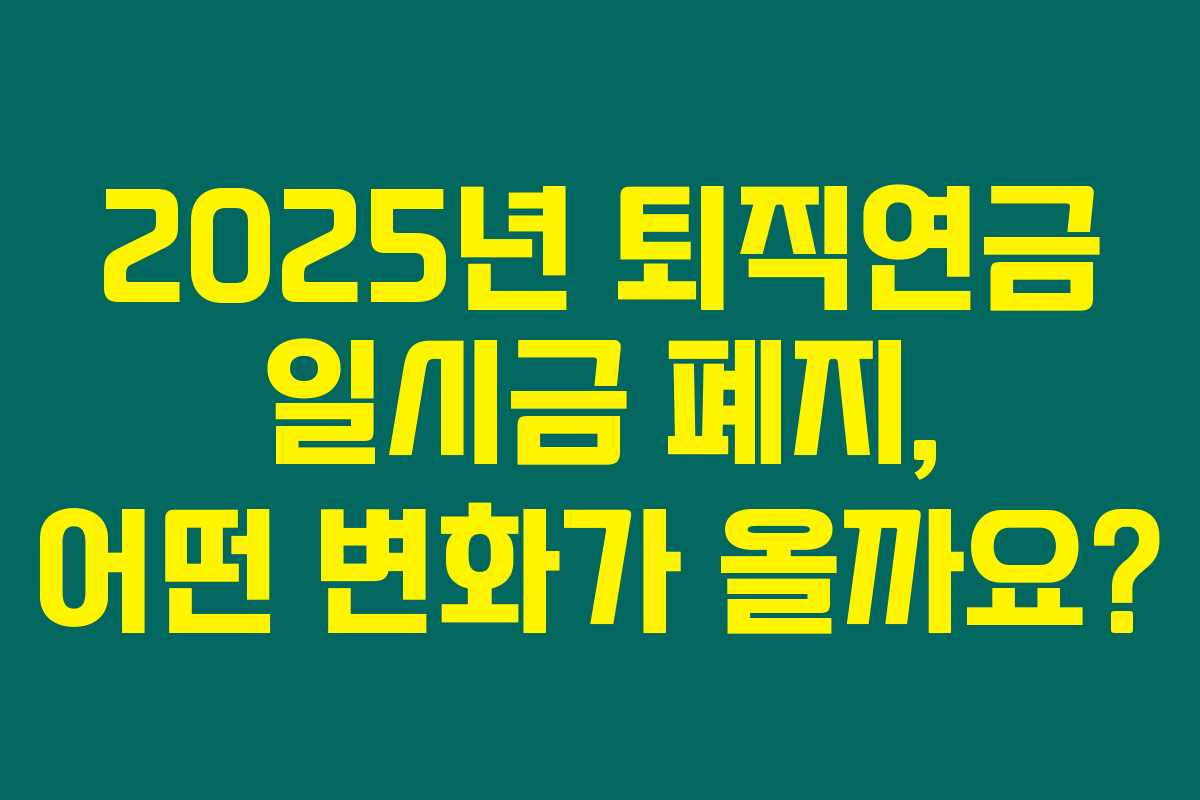 2025년부터 퇴직금의 일시금 수령 제도가 폐지될 예정이며, 연금 형태로만 지급될 것입니다.