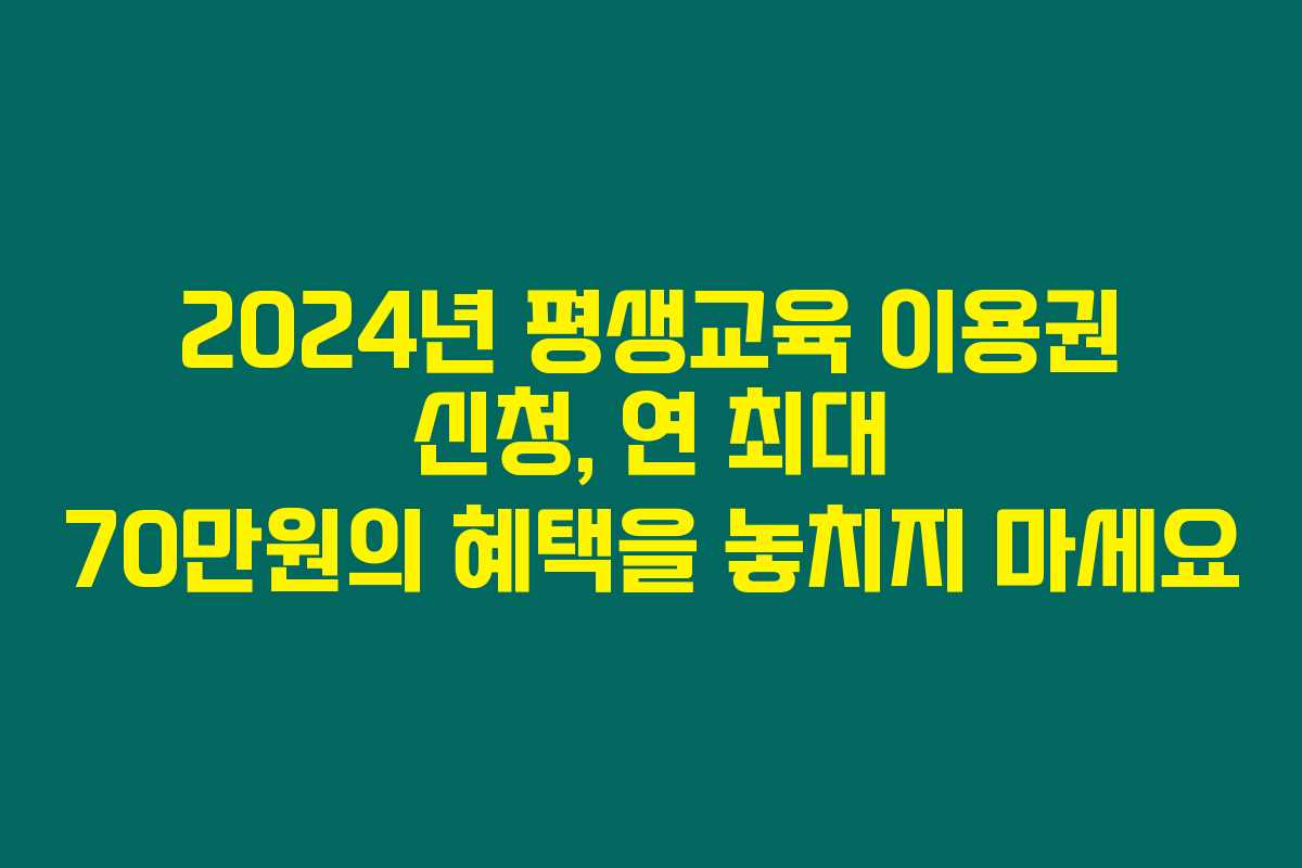 제가 직접 경험해본 결과로는, 2024년부터 제공되는 평생교육 이용권은 저소득층 성인에게 연 최대 70만원을 지원받을 수 있는 아주 유용한 제도입니다. 이 글에서 평생교육 이용권의 신청 방법과 조건, 이용하는 방법 등을 자세히 알아보건대, 많은 도움이 될 거에요. 아래를 읽어보시면, 이 훌륭한 기회를 절대 놓치지 않을 수 있을 것입니다.