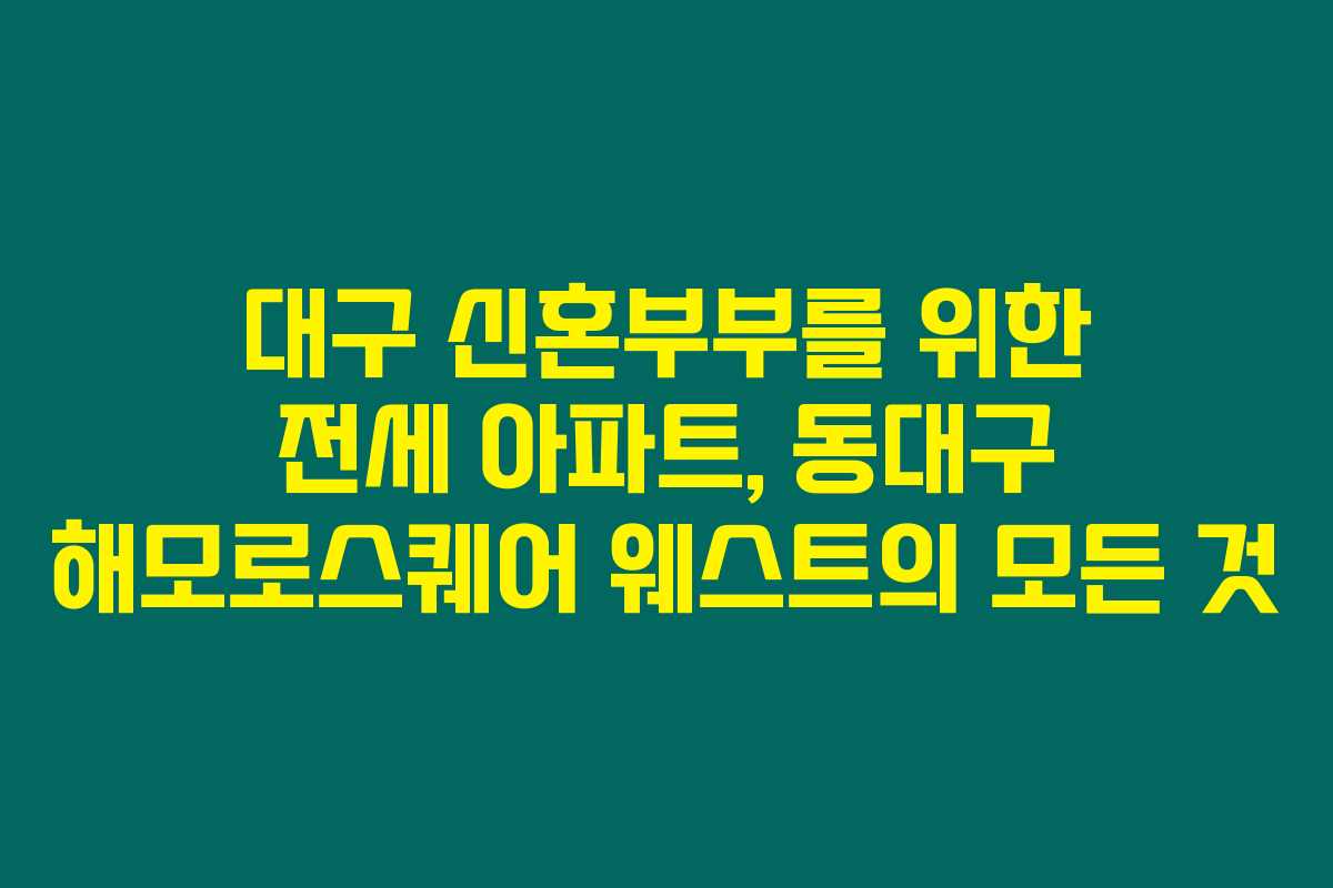 제가 직접 리서치한 바로는 대구의 신혼부부들이 편리하고 쾌적한 생활을 원하면서 전세 아파트를 찾는 경향이 점점 강해지고 있어요. 특히, 신축 및 준신축 아파트에서 신혼부부 버팀목 전세대출을 받을 수 있는 매물이 인기인데, 그 중에서도 동대구 해모로스퀘어 웨스트가 주목받고 있습니다. 아래를 읽어보시면 이 아파트의 특징과 장단점, 그리고 자세한 정보를 알 수 있을 거에요!