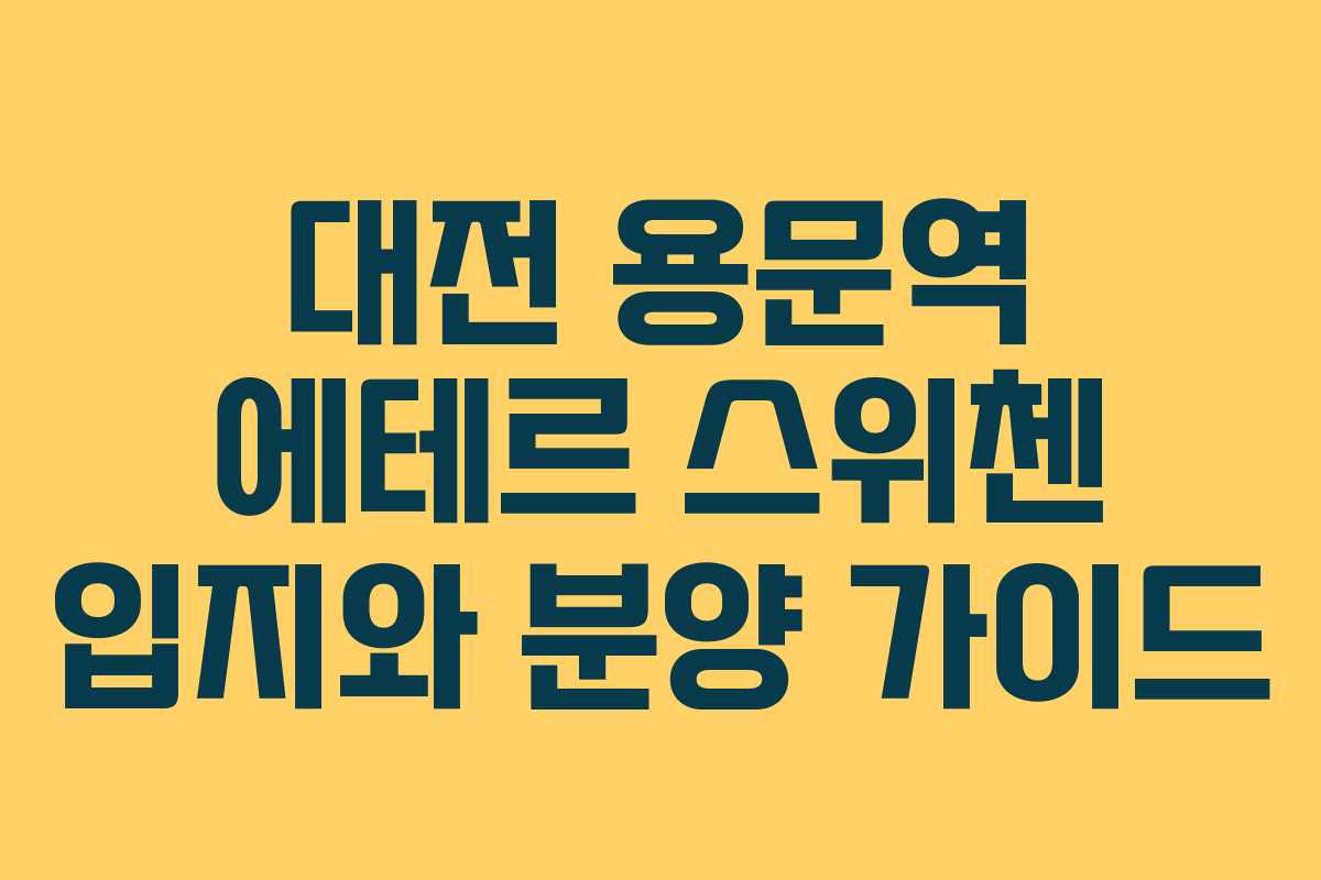 대전 용문역 에테르 스위첸 입지와 분양 가이드