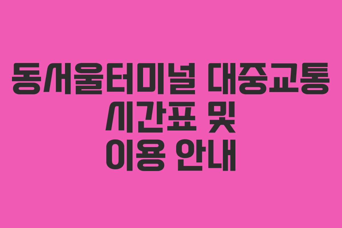 - 예매 방법: 고속버스는 ‘코버스’를 통해, 시외버스는 ‘버스타고’를 통해 실시간 시간표 확인 및 예매가 가능합니다.