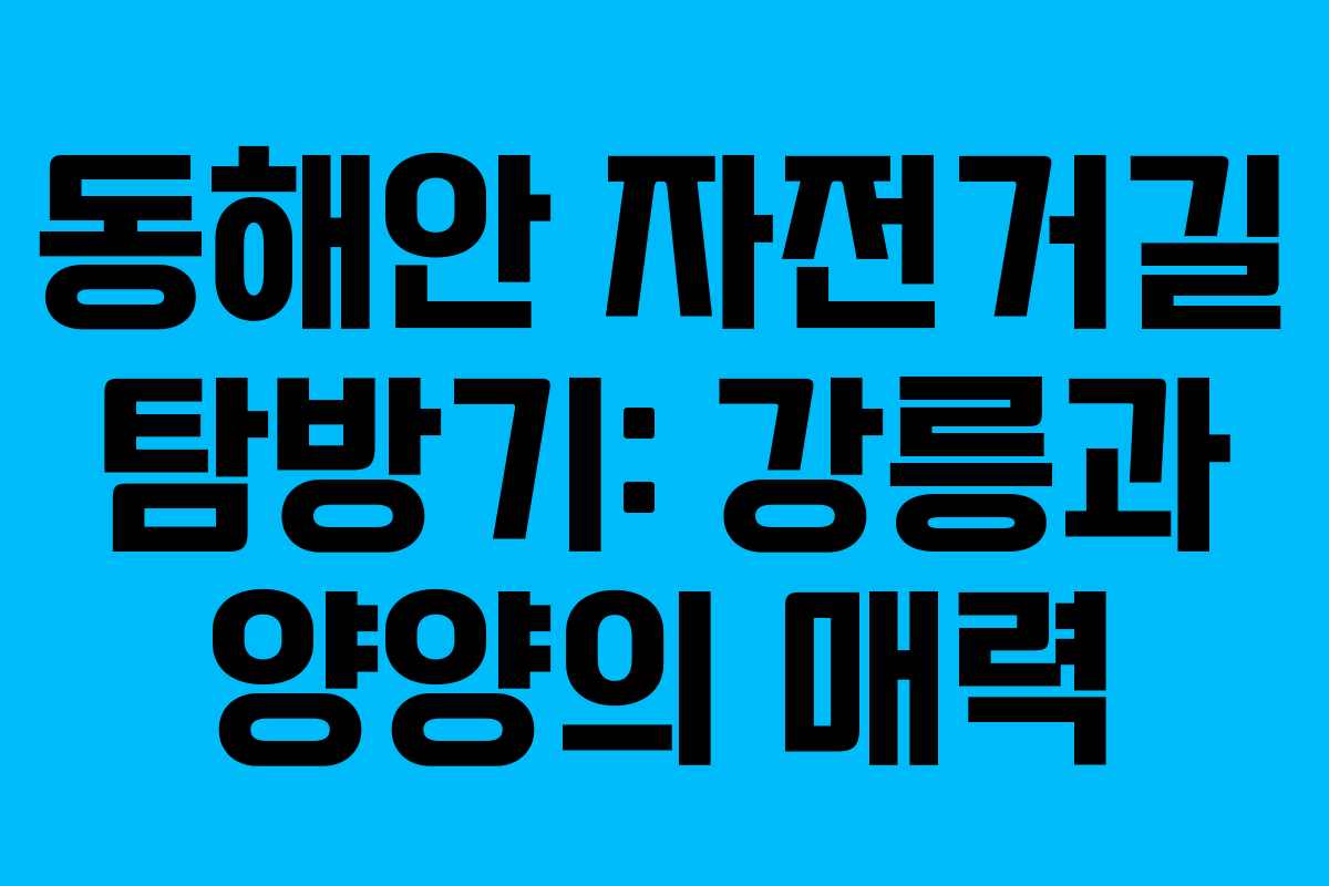 동해안 자전거길은 자전거를 즐기는 이들에게 매력적인 루트로, 강릉과 양양 구간은 특히 아름다운 경관을 자랑합니다. 이 길을 따라 자전거를 타며 느낀 점과 방문한 명소들에 대해 이야기해 보겠습니다.