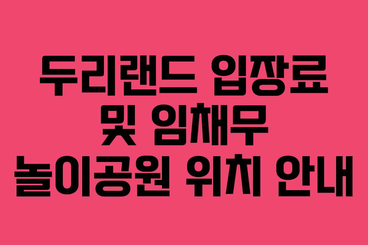 두리랜드에 대한 정보와 위치를 정리해 보았습니다. 아이들과 함께 즐거운 시간을 보내고 싶다면 꼭 방문해 보시기 바랍니다.