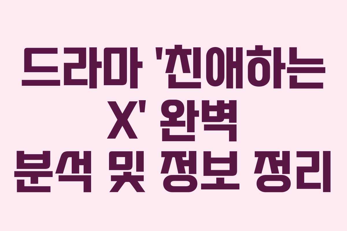 티빙 오리지널 드라마 ‘친애하는 X’는 파멸 멜로 서스펜스 장르로, 강렬한 스토리와 뛰어난 연출로 주목받고 있습니다. 이 글에서는 드라마의 기본 정보부터 등장인물, 줄거리, 그리고 결말에 대한 스포일러까지 자세히 다뤄보겠습니다.