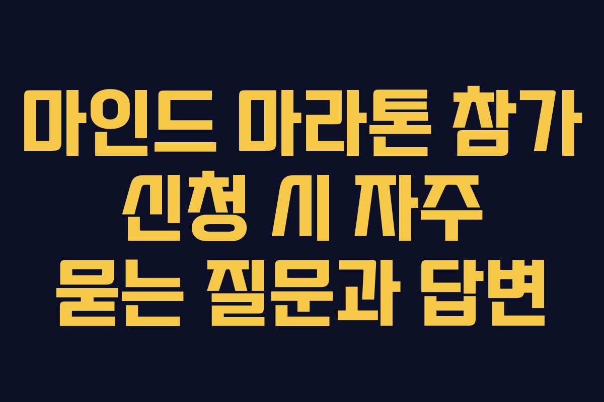마인드 마라톤은 최근 몇 년 동안 많은 사람들의 관심을 받고 있는 행사입니다. 이 글에서는 마인드 마라톤에 참가하고 싶어하는 분들을 위해 자주 묻는 질문들을 정리했습니다. 특히 처음 참가하는 분들을 위해 유용한 정보도 포함되어 있으니 참고하시기 바랍니다.