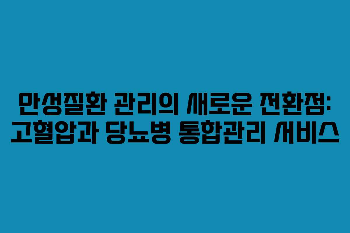 2024년 8월부터 고혈압과 당뇨병 환자를 위한 통합관리 서비스가 건강보험 적용을 받게 됩니다. 이는 지속적인 만성질환 관리를 위해 의원에서 제공하는 서비스로, 본격적인 시행을 앞두고 있습니다.