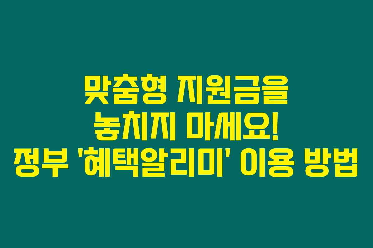 이제 정부 제공의 다양한 혜택을 놓치지 않고 받을 수 있는 방법을 알게 되셨죠? 혜택알리미를 통해 맞춤형 지원금을 손쉽게 받아보세요!
