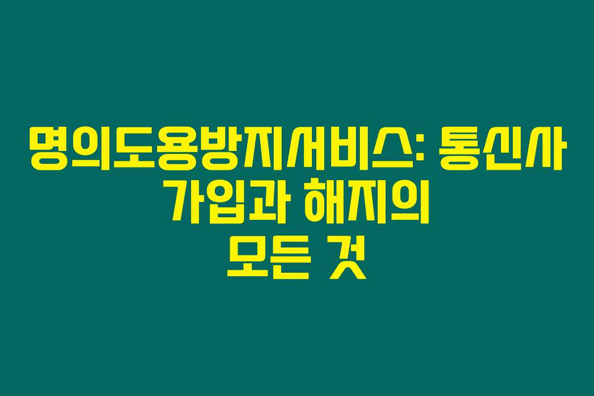명의도용방지서비스를 고려하고 있다면 이 글을 반드시 확인해 보세요. 통신사에서 신규 가입이 제한된 이유를 알지 못해 당황했던 경험이 있나요? 명의도용방지서비스가 정해준 규정 때문에 헉 소리 날지도 몰라요. 어떻게 하면 이 서비스를 해지하고 원활하게 통신사 가입을 할 수 있는지 아래를 읽어보시면 답을 얻을 수 있을 거예요.