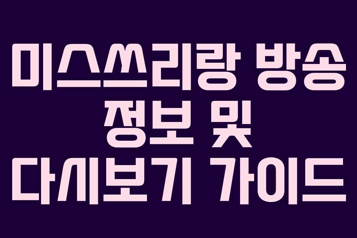 미스쓰리랑은 매주 새로운 재미와 감동을 선사하는 프로그램으로, 많은 시청자들의 사랑을 받고 있습니다. 방송 및 재방송 정보를 체크하여 놓친 방송을 다시 즐겨보세요.