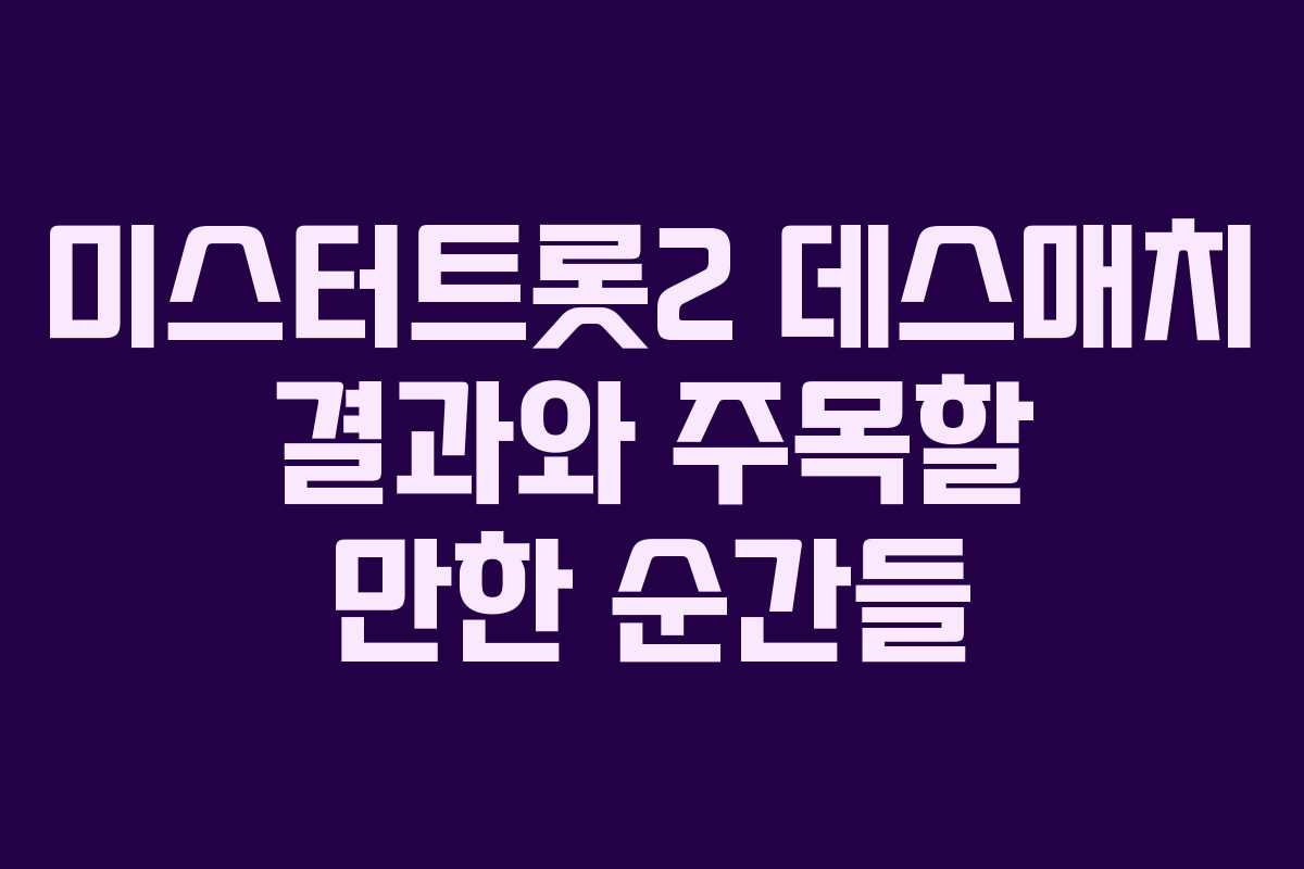 미스터트롯2는 경연을 통해 많은 이들에게 감동과 즐거움을 주고 있으며, 앞으로의 회차에서도 흥미로운 대결이 계속될 예정이다. 모든 참가자들의 열정과 노력을 응원하며, 다음 회차를 기대해보자.