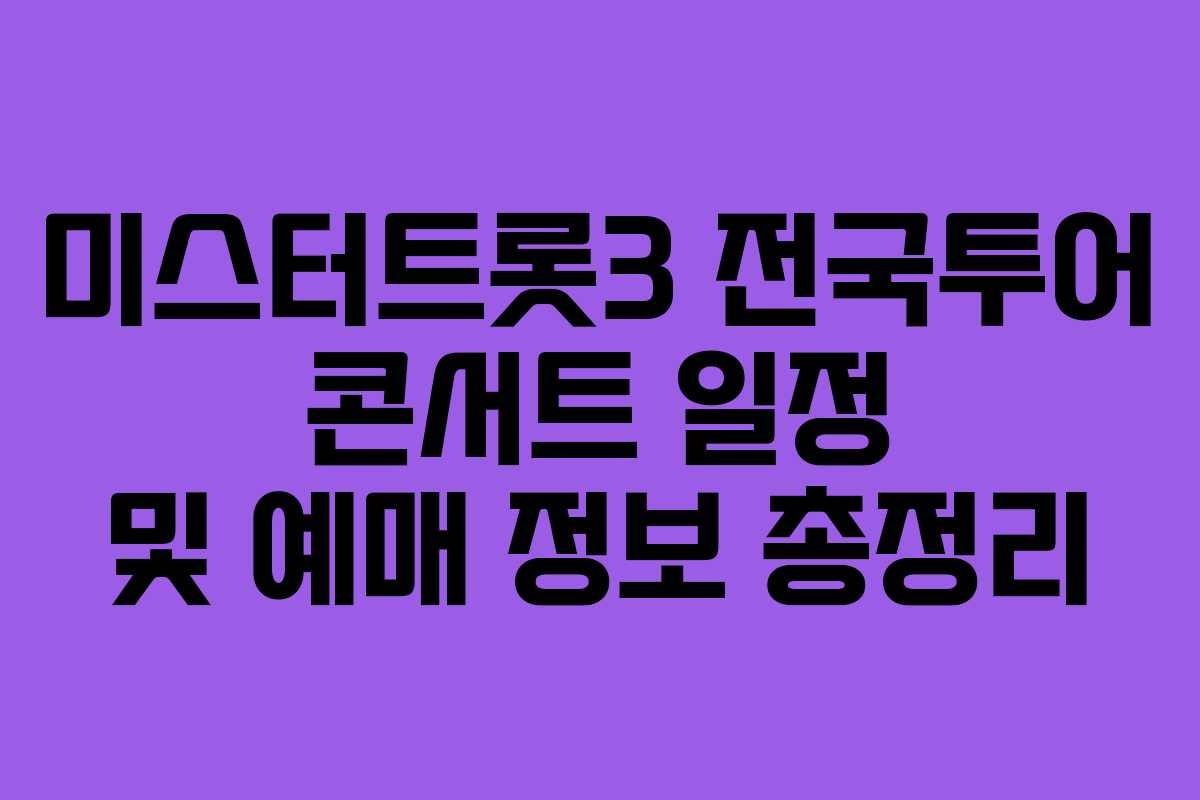 미스터트롯3 전국투어 콘서트가 드디어 다가옵니다! 이번 포스트에서는 콘서트의 일정, 예매 정보, 꿀팁을 정리하여 여러분이 성공적으로 티켓을 구매할 수 있도록 도와드리겠습니다.