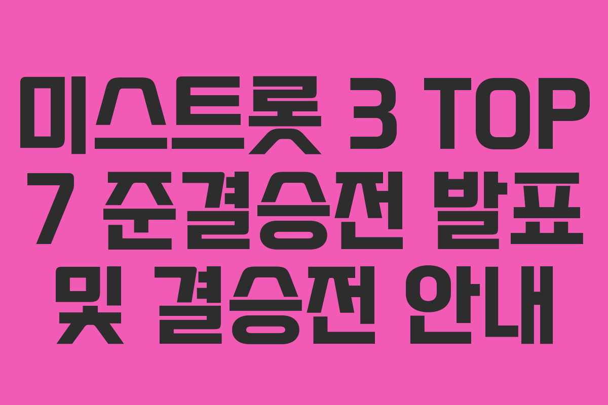 2024년 2월 29일, 미스트롯 3의 준결승전이 개최되며 결승전을 향한 최종 TOP 7이 확정되었습니다. 이번 준결승전에서는 총 10명의 참가자가 진출하였으며, 이 중에서 7명이 결승에 진출하게 되었습니다.