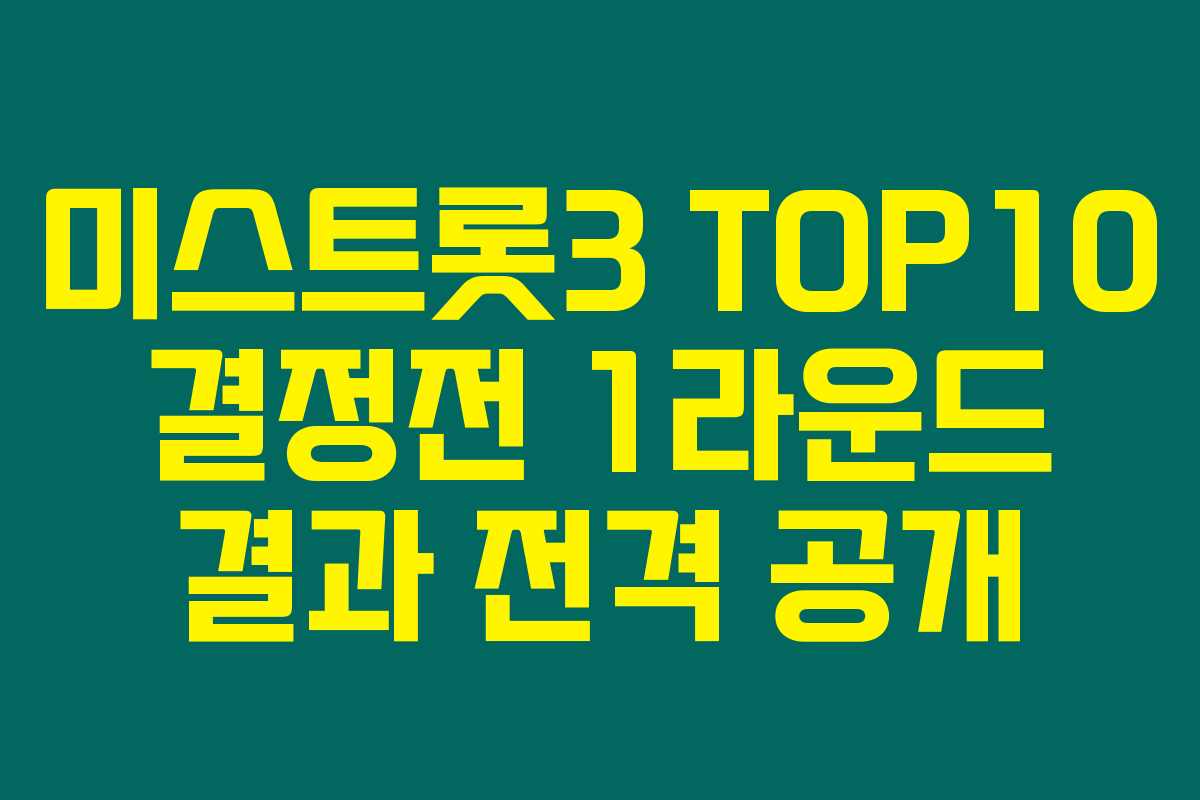 미스트롯3 팬이신가요? TOP10 결정전의 1라운드 결과를 기다리셨다면, 아래의 내용이 꼭 필요할 거에요. 떠들썩한 경연을 통해 최종 상위 그룹이 정해지는 이 과정은 팬들의 마음을 쏙 빼앗고 있죠. 과연 누구의 소리가 가장 빛났는지 확인해 보세요!