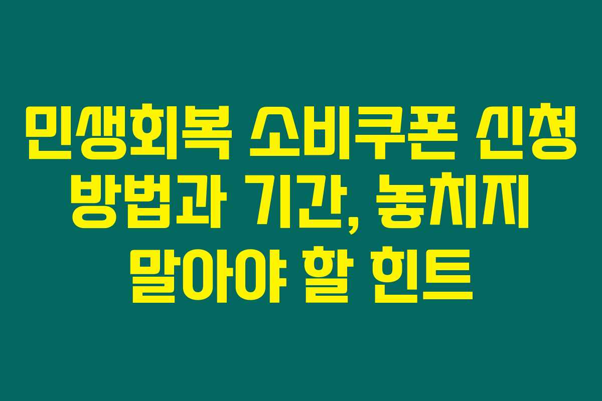 민생회복 소비쿠폰 신청은 일반적으로 2~3주간의 접수 기간이 주어지니, 해당 기간 내에 신청하는 것이 중요합니다!