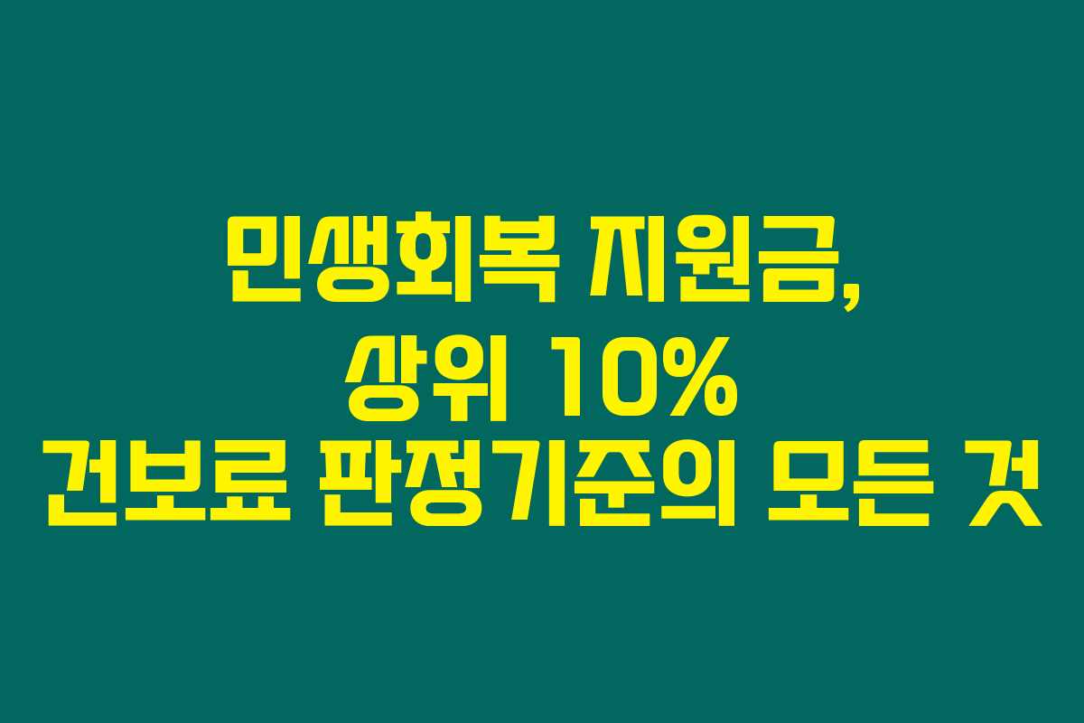 제가 직접 경험해본 결과로는, 민생회복 지원금은 경제적 어려움을 겪고 있는 많은 가구에 큰 도움이 되는 제도임을 알 수 있었습니다. 그러나 이 지원금을 받을 수 있는 자격 기준인 상위 10% 건강보험료 판정은 의외로 복잡한 면이 있습니다. 아래를 읽어보시면, 상위 10% 판정 기준이 무엇인지, 어떻게 확인할 수 있는지에 대한 상세한 내용을 알 수 있습니다.