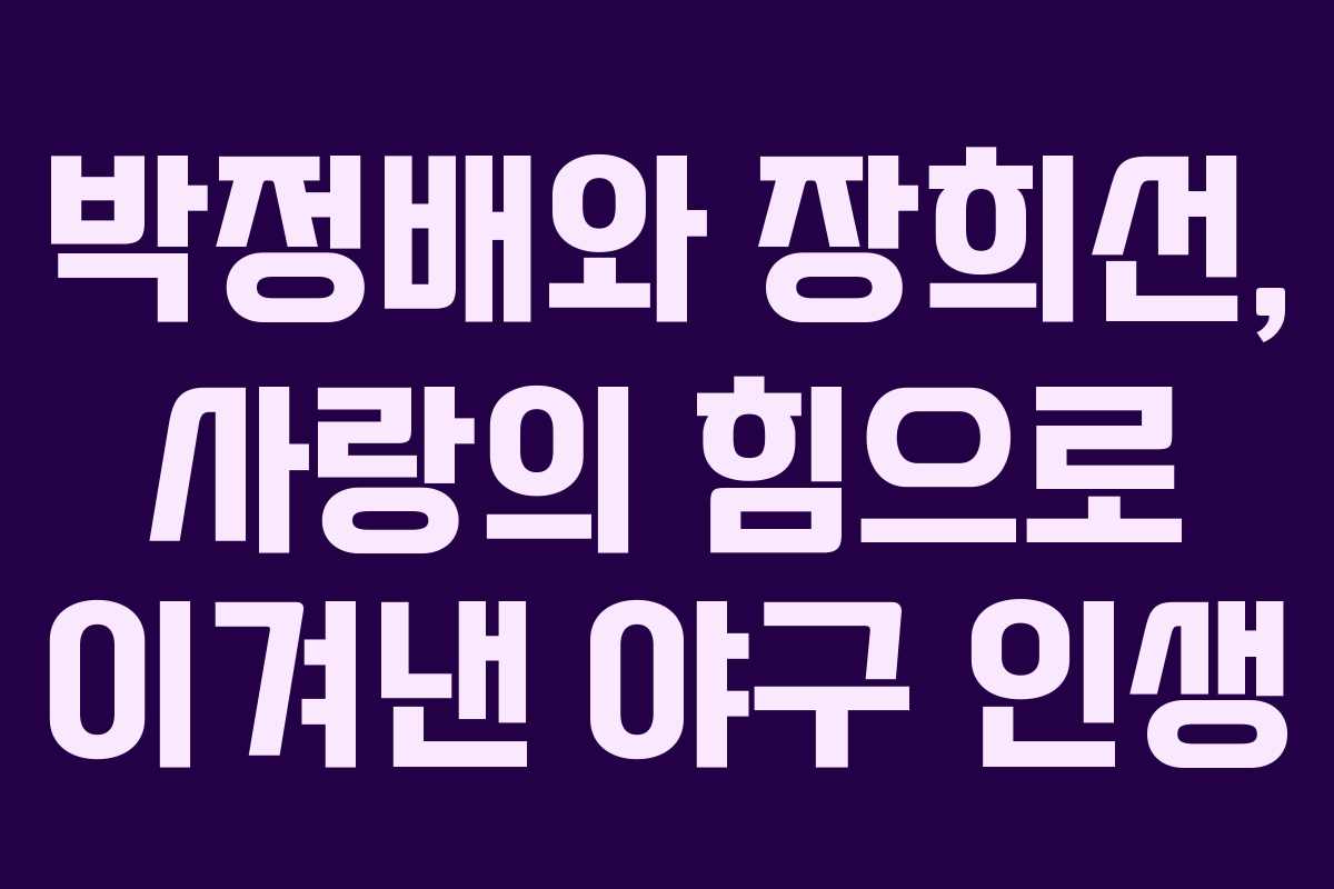 박정배(SK 와이번스 투수)와 그의 아내 장희선 씨의 이야기는 사랑이란 무엇인지 보여줍니다. 힘든 시간을 함께 견디고, 기쁜 순간을 함께 나누는 그들의 러브 스토리는 스포츠와 인생의 의미를 더욱 깊게 합니다.