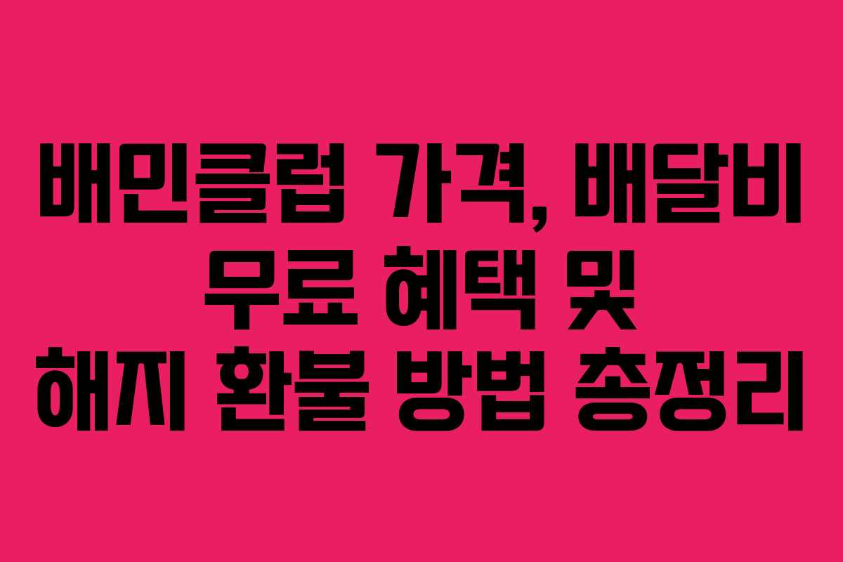 배달의 민족에서 제공하는 배민클럽은 다양한 혜택으로 많은 사용자들에게 사랑받고 있습니다. 특히 배달비 무료 혜택은 사용자들에게 큰 장점으로 작용하고 있습니다. 이 글에서는 배민클럽의 가격, 배달비 무료 혜택, 해지 및 환불 방법 등을 자세히 살펴보겠습니다.