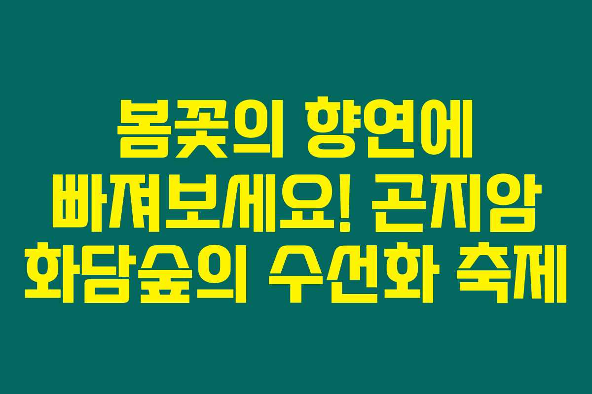 곤지암에서 특별한 시간을 보내고 싶다면, 곤지암 화담숲의 봄 수선화 축제를 놓치지 마세요. 이곳은 수목원을 배경으로 하여 가족, 친구와 함께 즐길 수 있는 아름다운 공간이랍니다. 아래를 읽어보시면, 화담숲에서의 완벽한 하루를 만드는 방법과 그 매력을 발견하게 될 것입니다.
