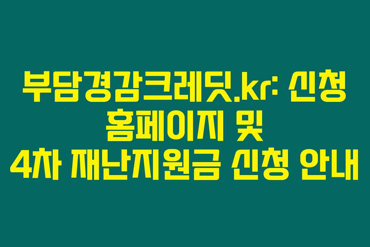 4차 재난지원금을 신청하려는 분들은 꼭 주목하세요! 이 글에서는 부담경감크레딧.kr을 통한 4차 재난지원금의 핵심 정보와 신청 방법을 정리해 보았습니다. 특히 자영업자와 소상공인을 위한 지원 내용이 궁금하시다면, 아래를 읽어보시면 도움이 될 거예요.